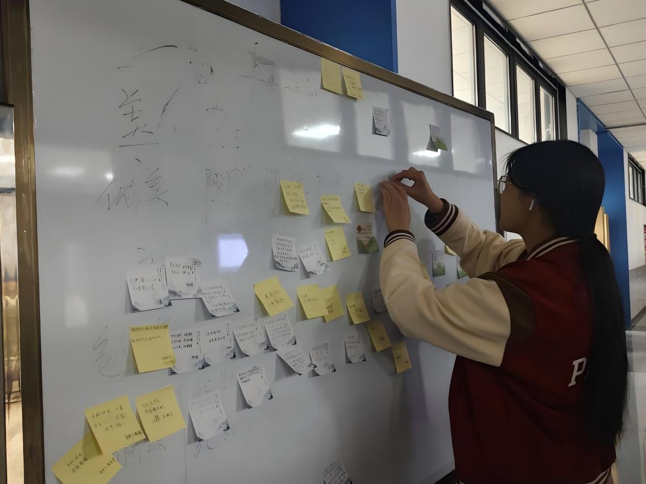 活动伊始,同学们有序就座,现场播放国庆主题短片。短片带领大家回顾国家发展的峥嵘历程与辉煌成就,感人画面引发同学们深切共鸣,现场氛围庄重热烈。观影结束后,活动进入“心愿寄予”环节。同学们领取便签,认真书写对祖国的真挚祝福与个人未来展望,字句间承载着青春梦想与对祖国美好明天的祈愿。最后,在负责人引导下,同学们依次将写满心愿的便签贴于心愿板,汇聚成我系学子与祖国共同前行的生动见证,活动圆满落幕。