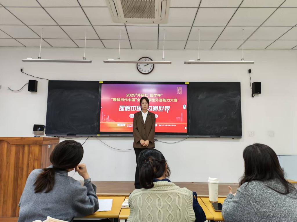 为激发学生英语学习兴趣,提升其思辨能力与跨文化沟通素养,深化对当代中国发展道路的理解,10月9日,外国语系于知行楼B109教室成功举办“外研社·国才杯”“理解当代中国”演讲、口译比赛校赛,共有25名同学参赛。