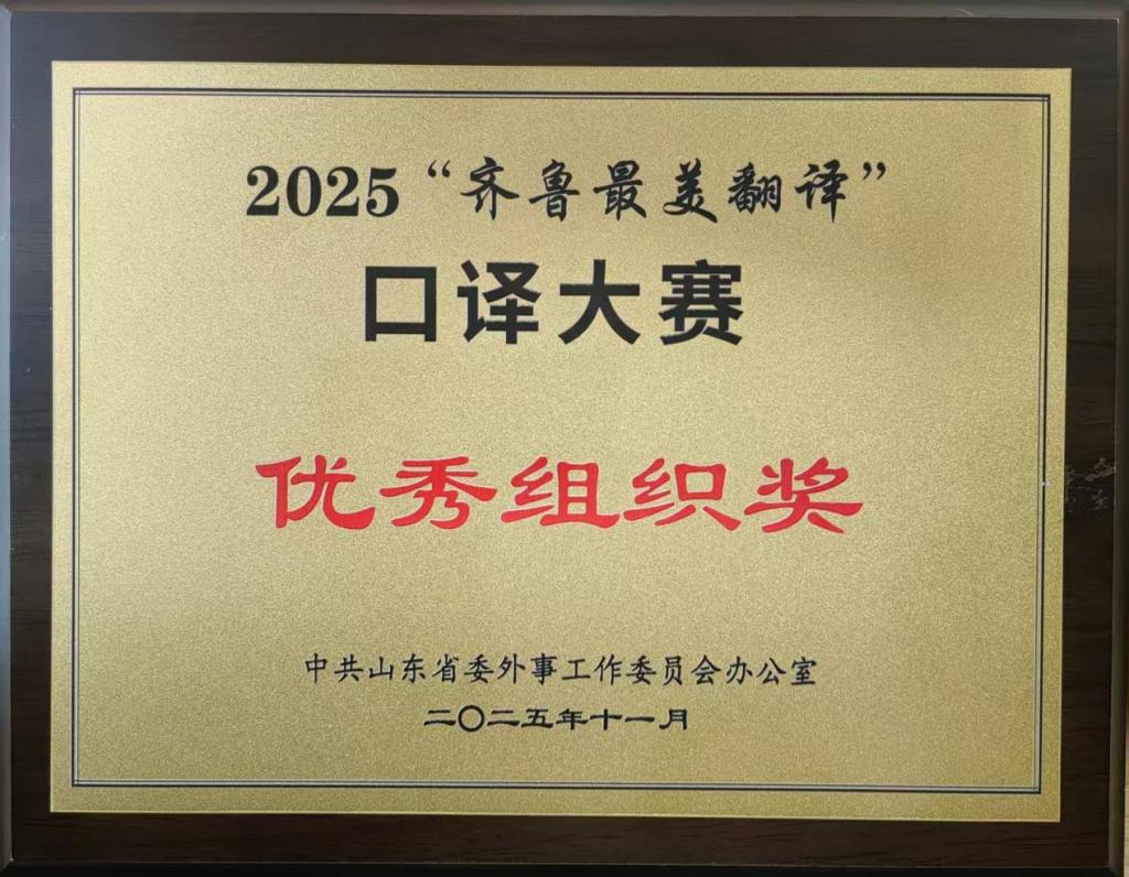 11月13日,由中共山东省委外事工作委员会办公室、日照市人民政府主办,山东省翻译协会、日照市人民政府外事办公室承办的2025“齐鲁最美翻译”口译大赛落下帷幕。经激烈角逐,我校外国语系教师么新玥荣获英语组一等奖,被纳入山东省高级翻译人才库,我校获“优秀组织奖”。