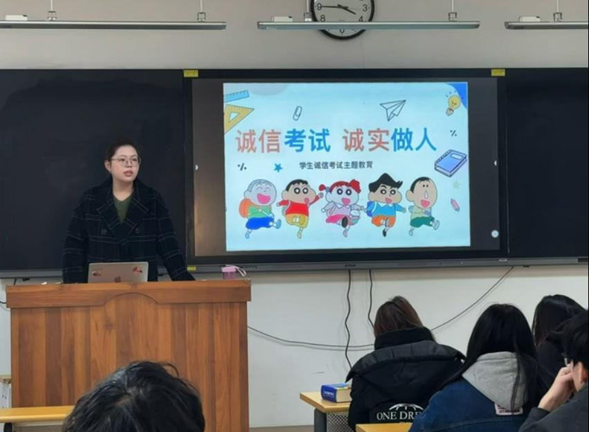 为进一步加强学风建设,引导学生树立正确的考试观与价值观,营造诚实守信的考试氛围,12月10日,我系于知行楼各班教室开展诚信考试主题教育系列活动,2025级全体同学参与其中。