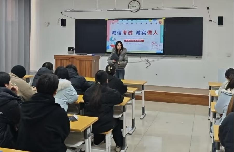 为引导学生树立诚信意识,营造公平公正的考试氛围,保障期末考试顺利进行,1月9日,我系于知行楼各班教室开展了“诚信考试”主题班会活动,我系专职辅导员、全体同学参与。