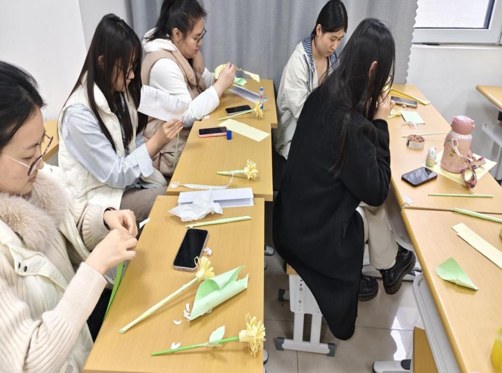 活动伊始,同学们齐聚教室,在负责人的讲解与示范下学习手工纸花的制作方法。大家认真折叠、细心裁剪,让每一朵花都凝聚着对先烈的敬仰之情。随后,在负责人的带领下,同学们有序参观烈士纪念堂,通过观看实物展品和图文资料,深入了解了革命先辈的不朽功勋与英勇事迹。参观结束后,同学们庄严肃立,向革命烈士纪念碑鞠躬默哀,并依次敬献亲手制作的花朵,以此寄托对烈士们的崇高敬意与深切追思。活动最后,同学们在纪念堂门前合影留念。